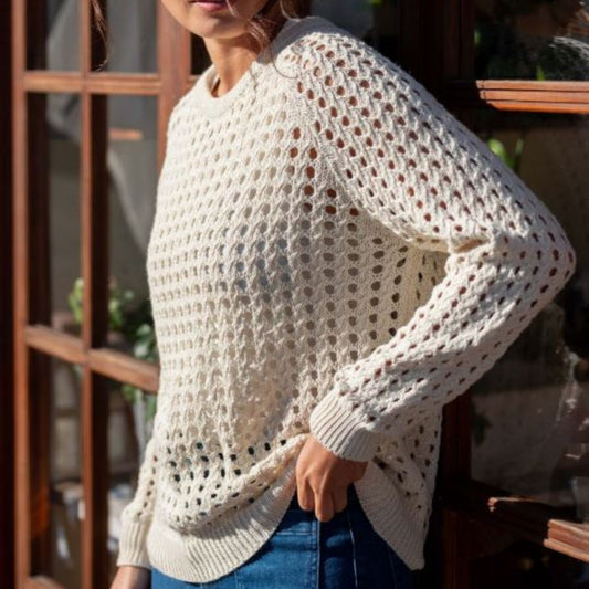 Mersea Amalfi Cotton Crochet Sweater - Natural