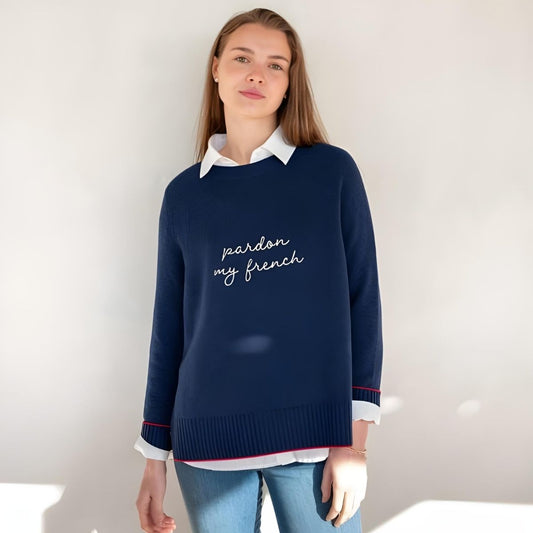 Mersea Banff Crewneck "Pardon my French" - Oxford Blue