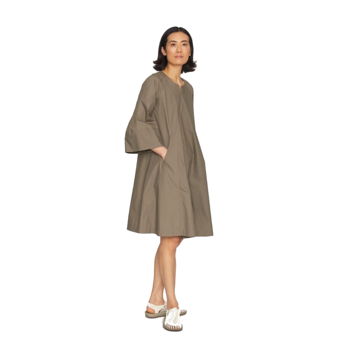 This gorgeous dress has all the trademarks of the Bitte Kai Rand styling. This simple dress has lots of volume and wide sleeves, giving it a beautiful look. There are endless ways to add variety: try wearing it with a turtleneck underneath and add ballet flats, sandals, or trainers. In a glorious milk chocolate colour this little dress packs a punch!