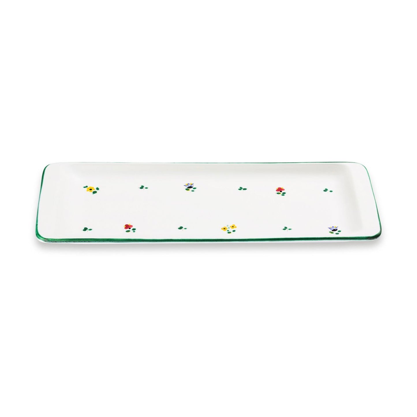 Elevate your hosting experience with the versatile and refined Alpine Flower Stollen Plate from Gmundner Keramik. This elongated tray is ideal for presenting your delectable culinary creations and can also serve as a striking centerpiece on a stand. Handcrafted in Austria.