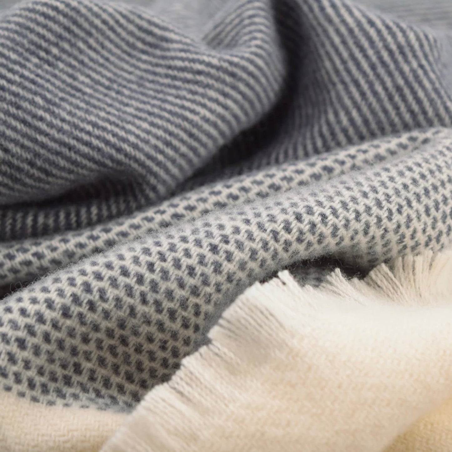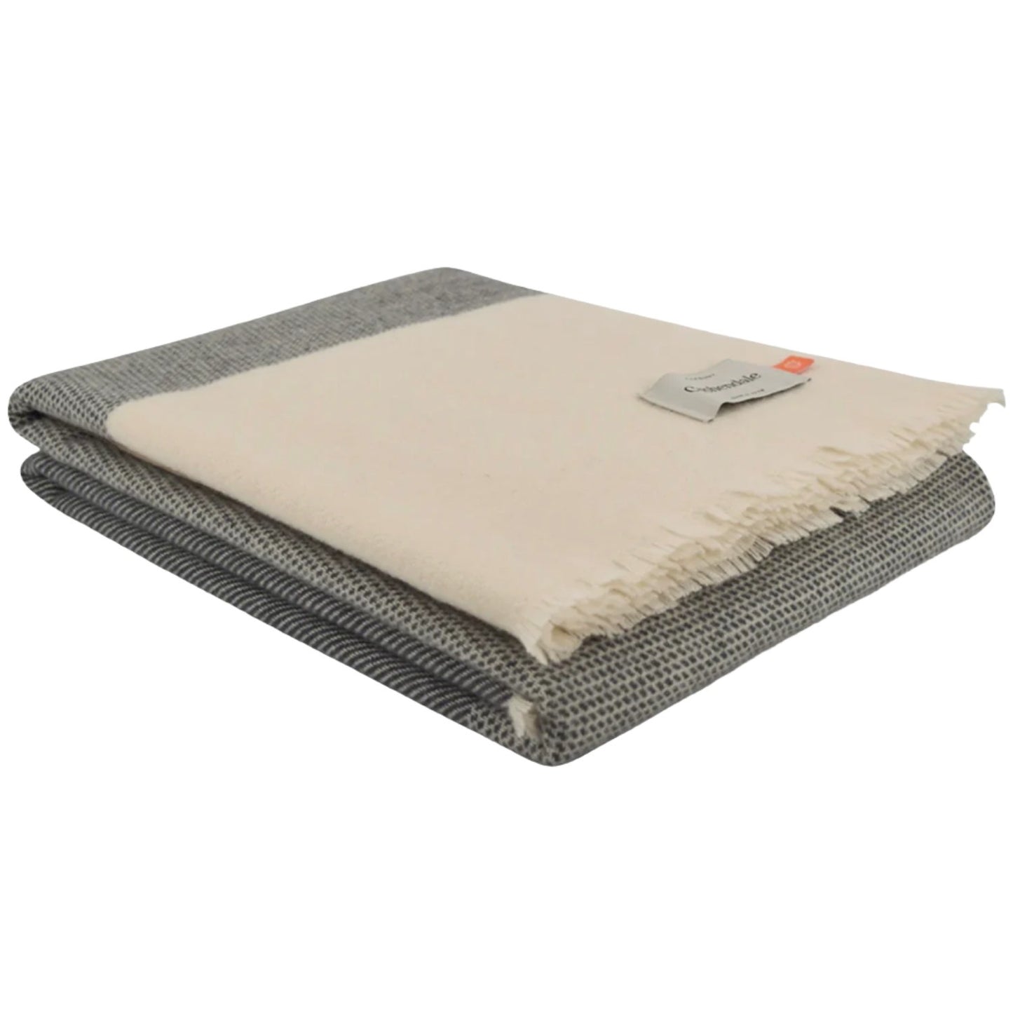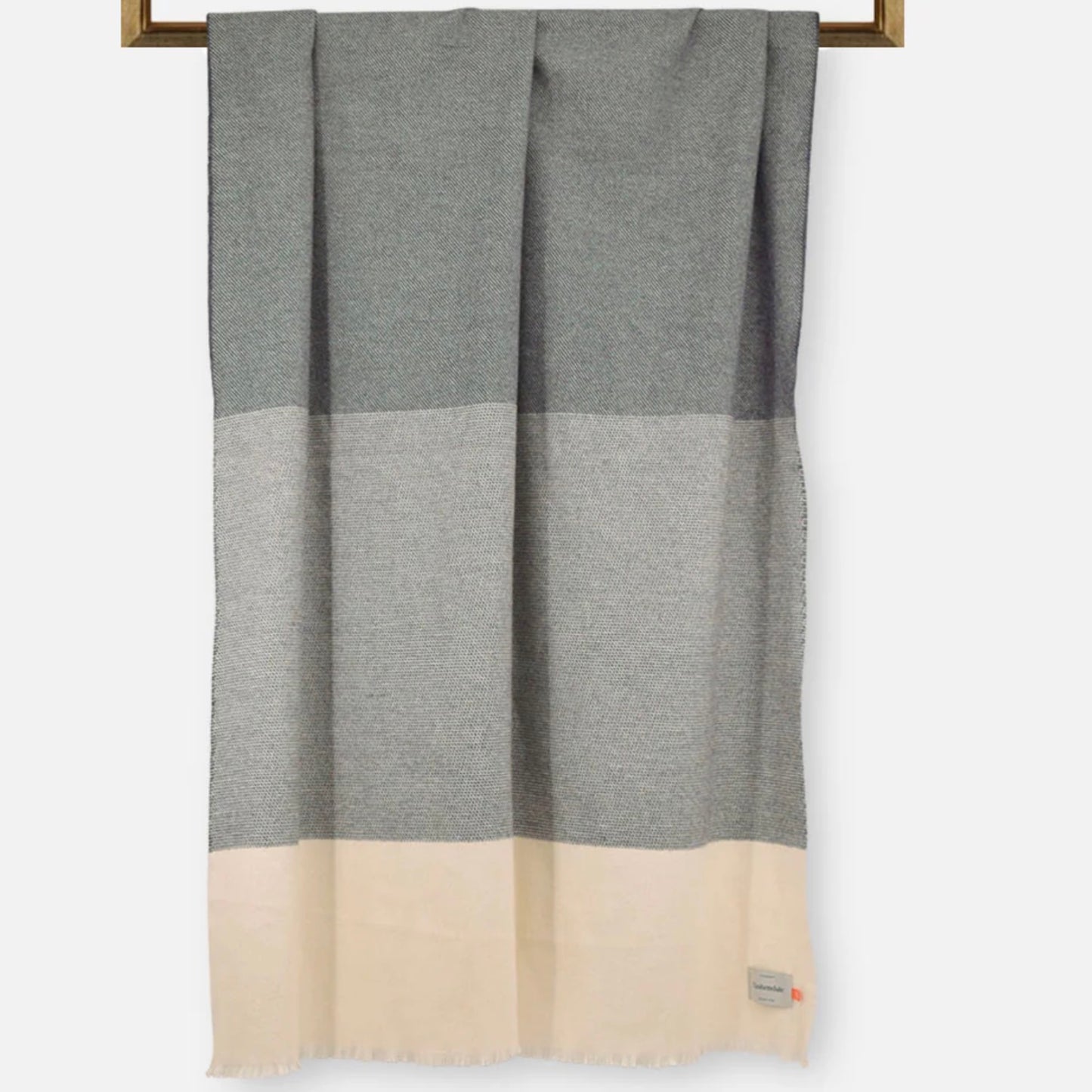 The Ballyogan throw is a clean and contemporary throw, with clean elegant lines in classic color ways. Featured in grey and neutral tones, the block color design in 100% merino lambswool is a sophisticated look. Made in Ireland by Cushendale.