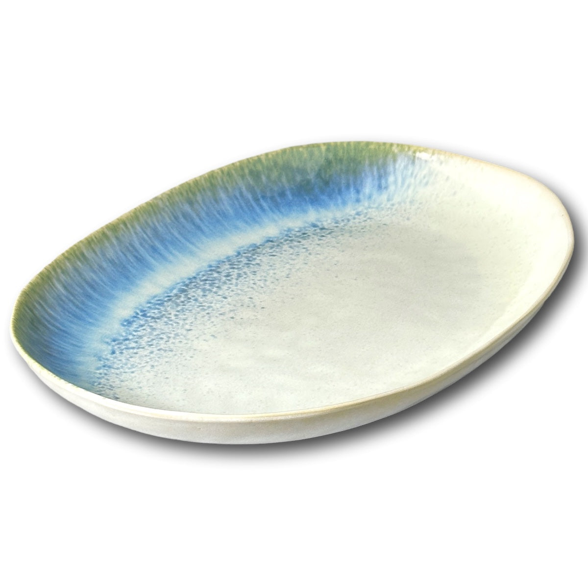 Experience the beauty of Carmel every day with this 17-inch stoneware tray from Carmel Ceramica. Made in Portugal, its wispy cloud design brings a touch of nature to your home.