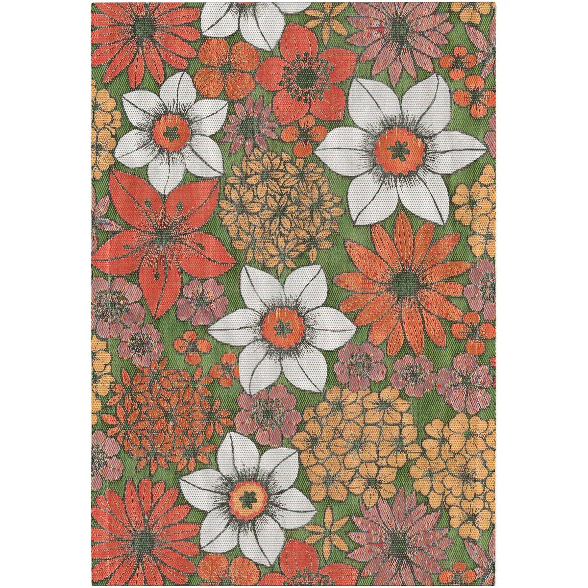 The Ekelund April Kitchen Towel has a retro floral design in oranges, green and yellow. Perfect as a kitchen or hand towel. Made in Sweden.