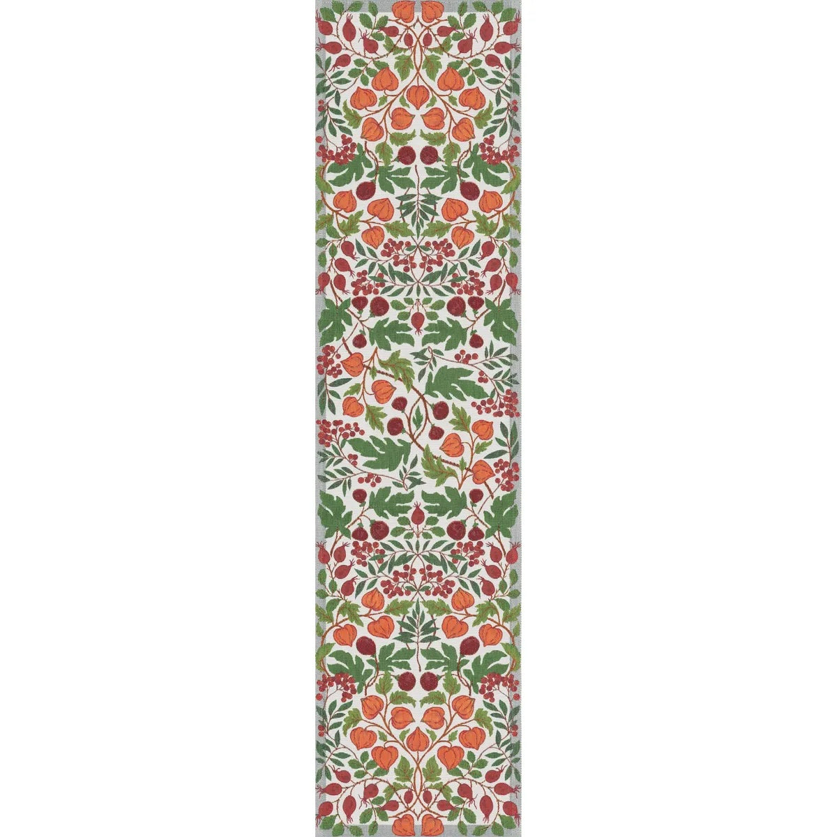 This table runner features a detailed design in green, orange, and red. Made of 100% cotton. Made by Ekelund in Sweden.
