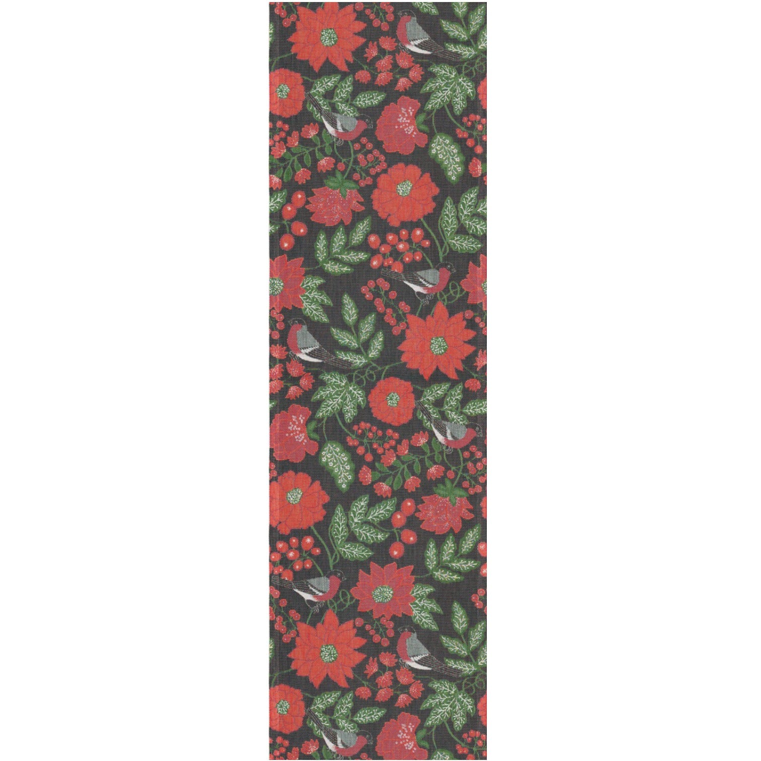 This holiday table runner features a design of birds and festive red flowers. Made of 100% cotton. Made by Ekelund in Sweden.