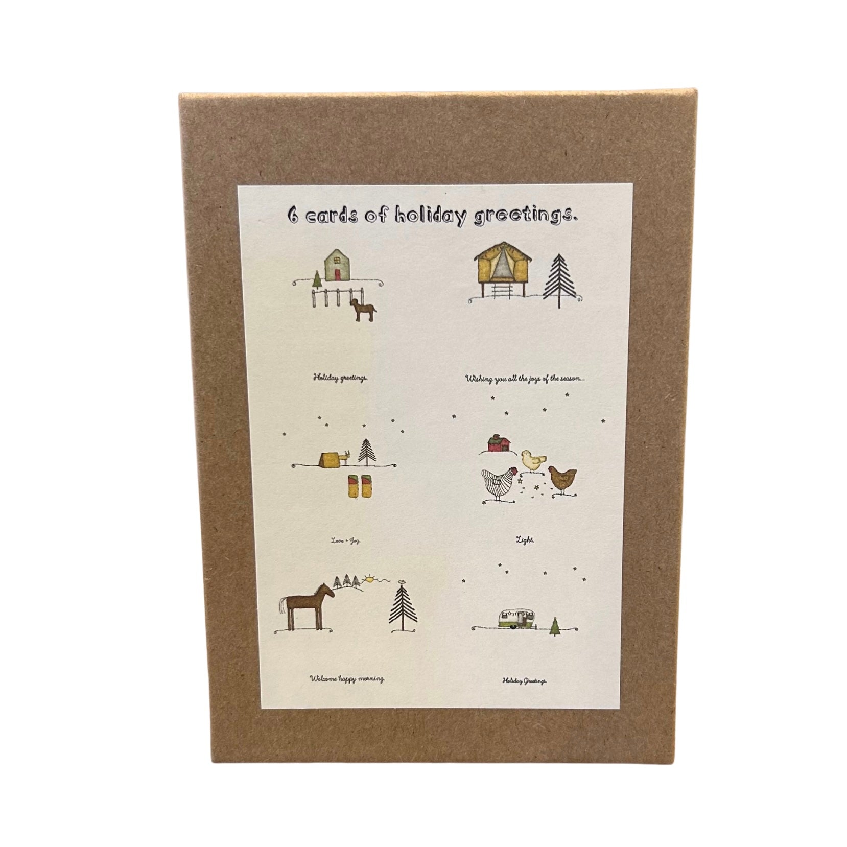 This Holiday Greetings Card Set/6 Boxed Set by Beth Mueller features 6 different festive greeting cards.