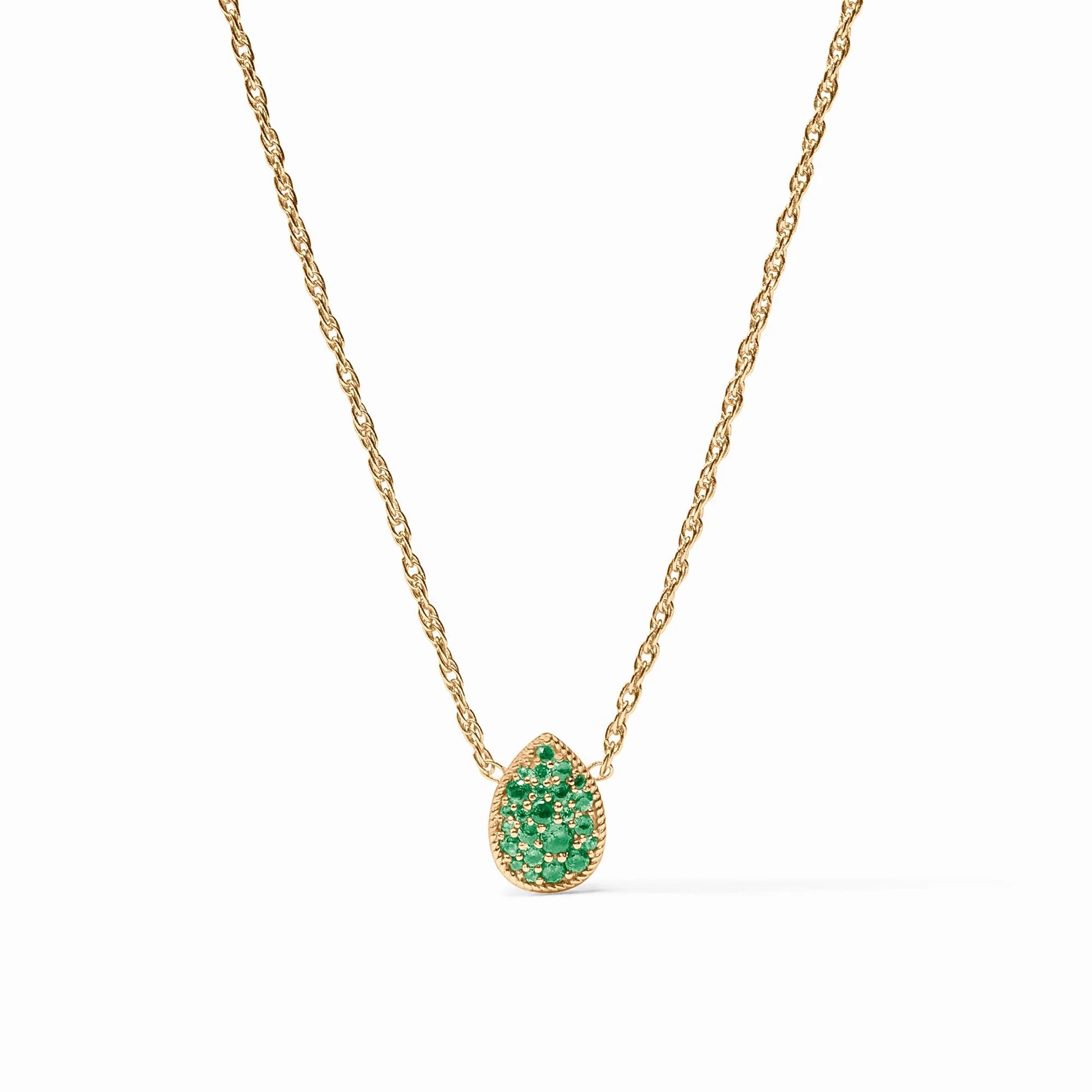 Julie Vos Pavé Teardrop Delicate Necklace - Emerald Green