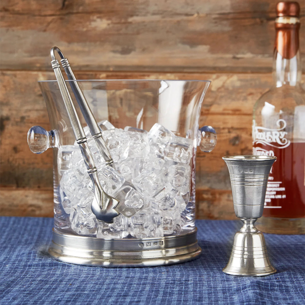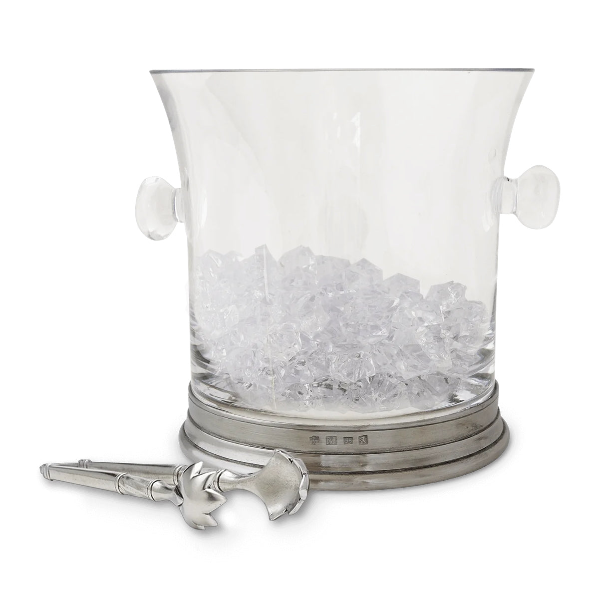 The Match handled crystal ice bucket is an eye-catching combination of Italian pewter and lead-free European crystal. This bar top essential comes packed with our classic ice tongs to add a refined elegance to chilling your favorite beverages.