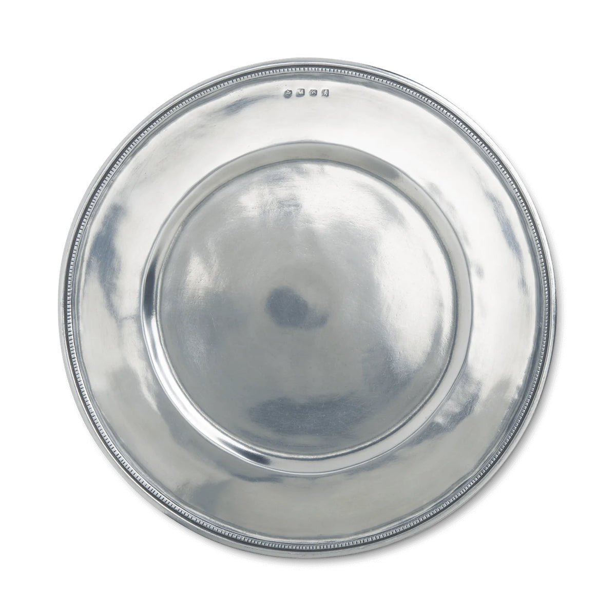 Featuring beaded details inspired by a 16th century Tuscan design, the Toscana charger from Match brings an elegant focal point to each place setting, making it all the more welcoming. The Match all-pewter chargers also make great service trays for passing around tempting nibbles before the main event.