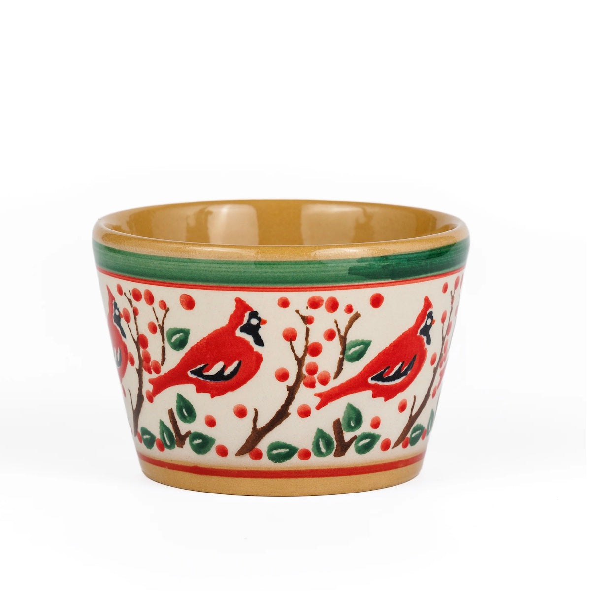 Elevate your desserts with this handcrafted Berry Bird Custard Pot. This Nicholas Mosse dish boasts a festive woodland design. Made in Ireland.