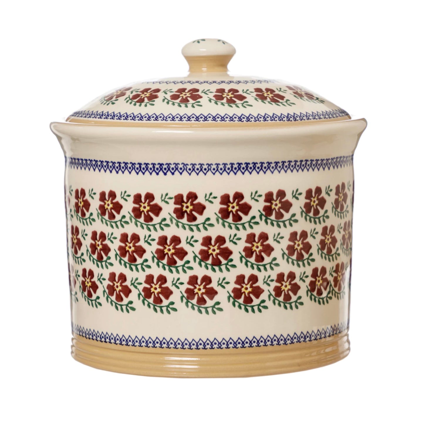 A large, sturdy piece to keep safe all your bread, grains, produce, or indeed anything. Keeps everything safe cool and away from critters. Holds a multitude in quantity. Featuring the famous Old Rose pattern. By Nicholas Mosse Pottery, handmade in Ireland.