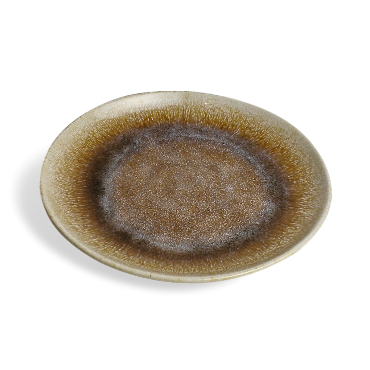 The Point Lobos collection brings stylish appeal to everyday dining. Different shades of brown mix with the white background in endless combinations. The reactive glaze makes each piece unique. This medium sized salad or dessert plate is by Carmel Ceramica and made in Portugal.