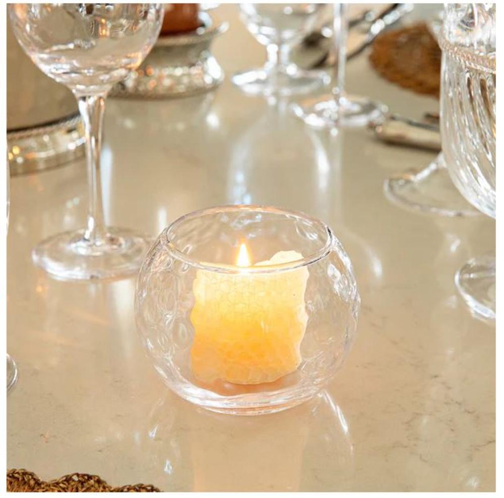 When the twinkle of candlelight meets the dappled-sunlight texture of Juliska Puro glass, the effect is a dance of shimmer-upon-shimmer that never fails to cast an utterly enchanting glow wherever you place these petite sparklers, from dining table to hidden nook to bedside table. These tea lights are especially lovely when clustered in multiples for dramatic effect. Candle not included.