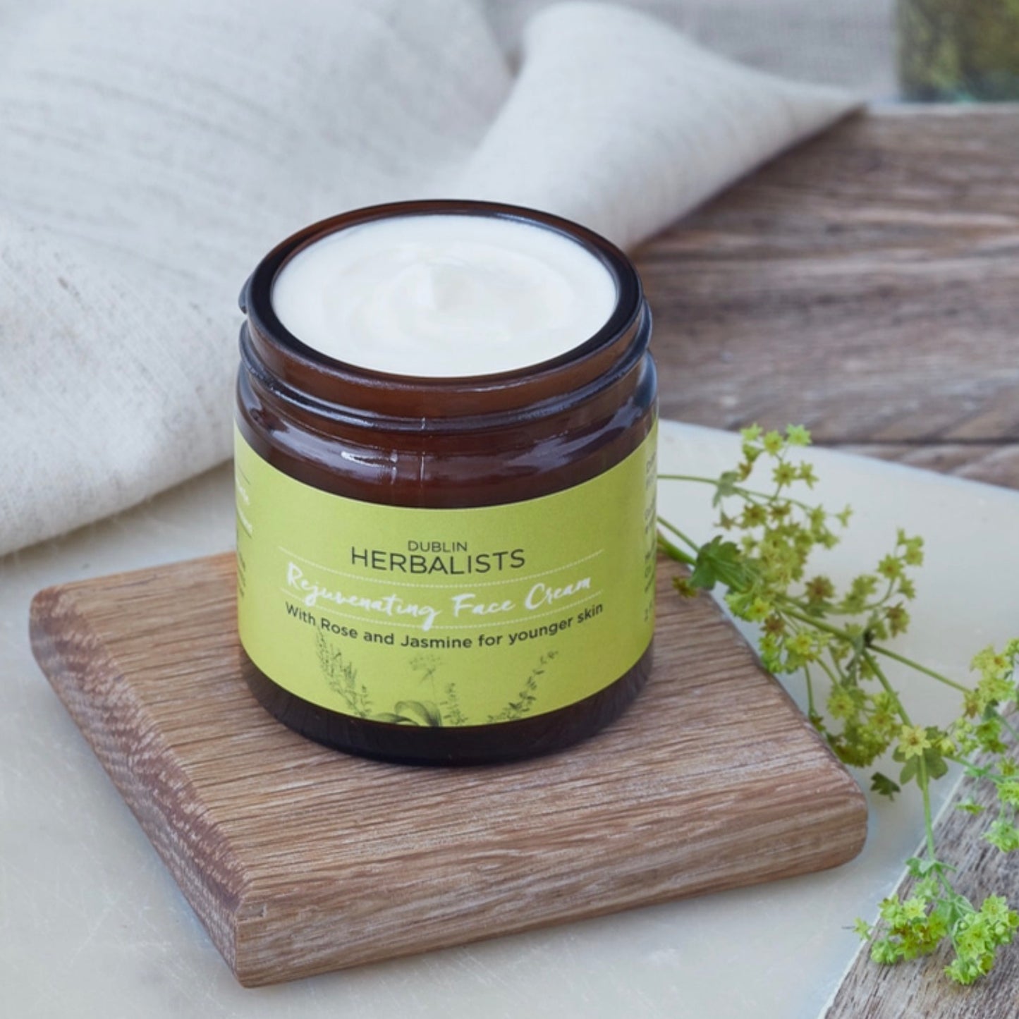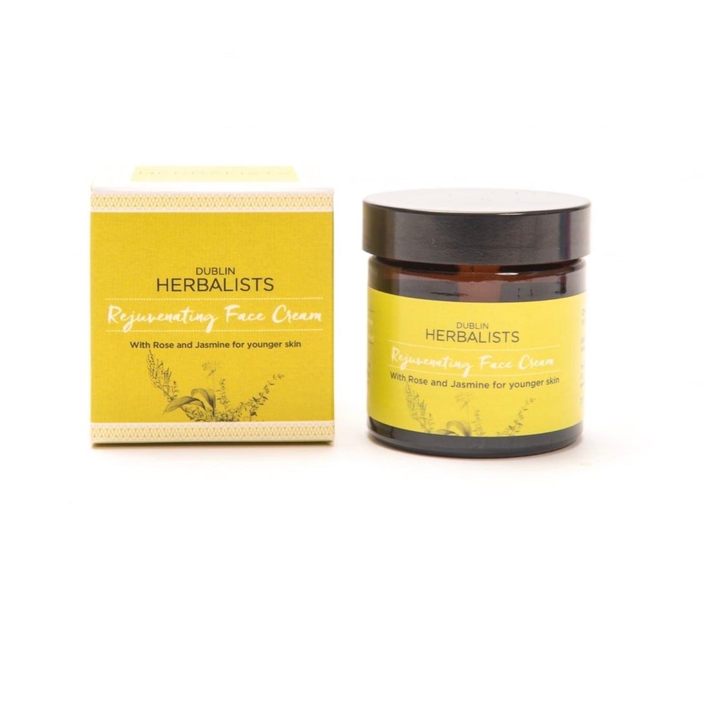 Liven up tired skin with this Dublin Herbalists Rejuvenating Face Cream. Light in texture, the strength of rich, natural ingredients such as Argan Oil and Pomegranate Extract a lasting, daily moisturizer. Scented with Rose and Jasmine Essential Oils, this cream can be applied as often as you like and is suitable for all skin types. Made in Ireland.