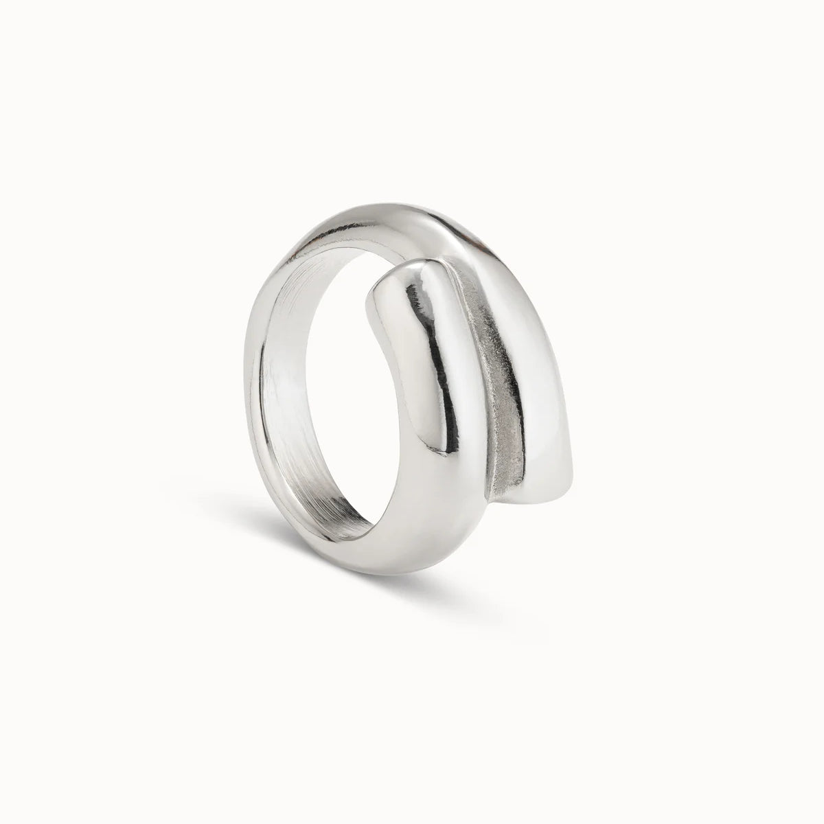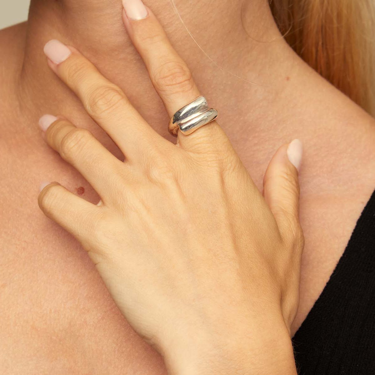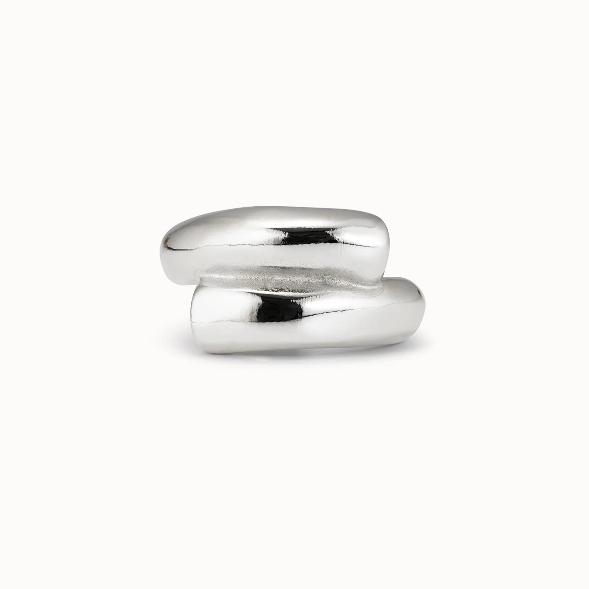 Sterling silver-plated tubular-shaped ring with clasp in the center. Made in Spain using handcrafted techniques.