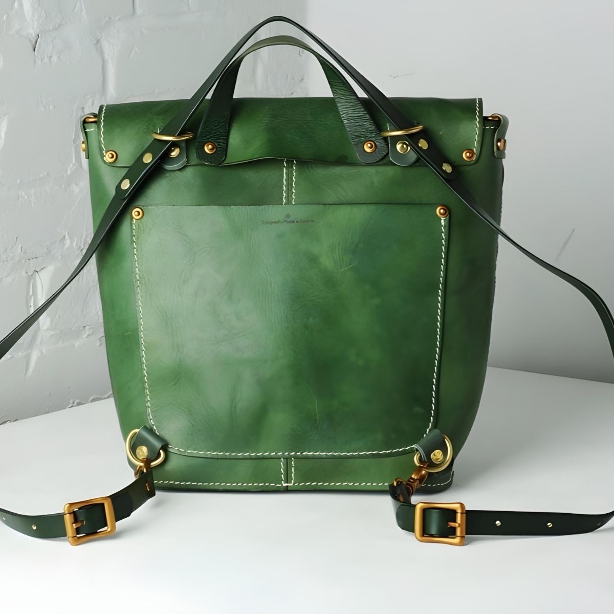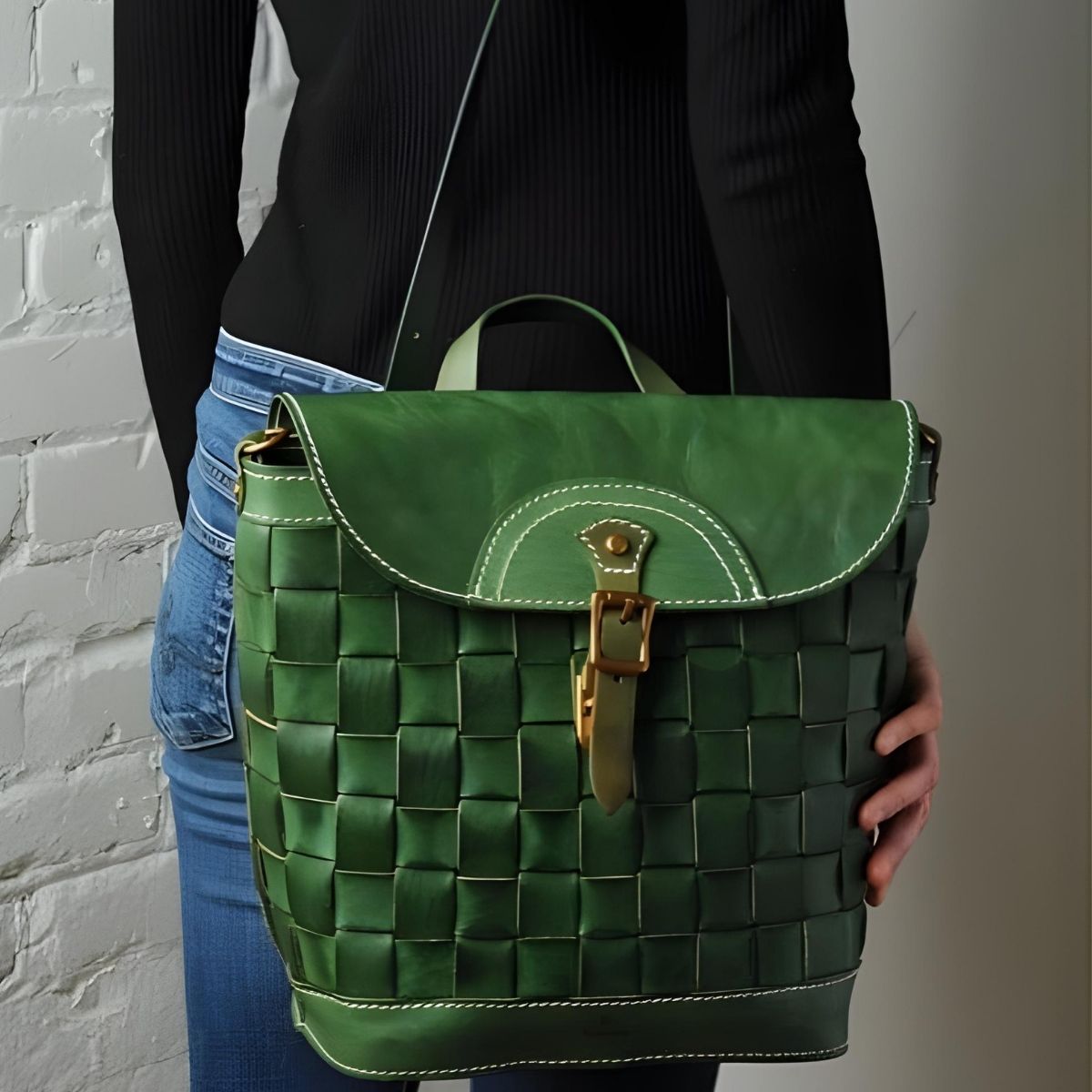 Venture Convertible Backpack features rustic hand-interwoven construction with luxurious full-grain hand-dyed Italian Vachetta leather. Functional and vintage inspired design stands out from the crowd. The convertible straps is a soon-to-be everyday essential that can transform into a shoulder bag or backpack by a simple pulling action. The leather will age beautifully to show a one of a kind ownership with time and use! Antique finished solid brass hardware highlights all the small fine details on the bag. This design is created on a desire to move away from trends and create practical, unique and timeless pieces.
